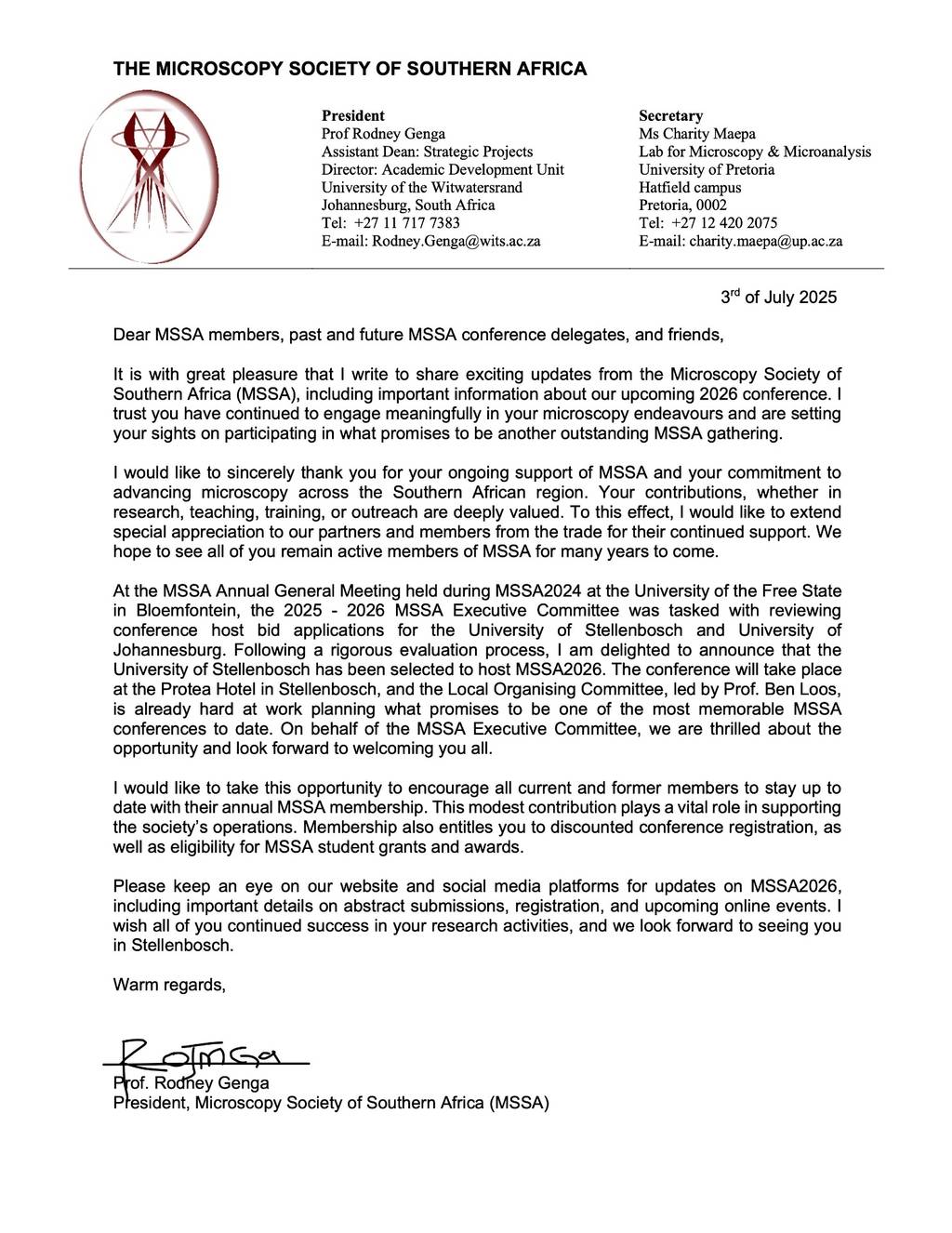 WELCOME TO the MICROSCOPY SOCIETY OF SOUTHERN AFRICA